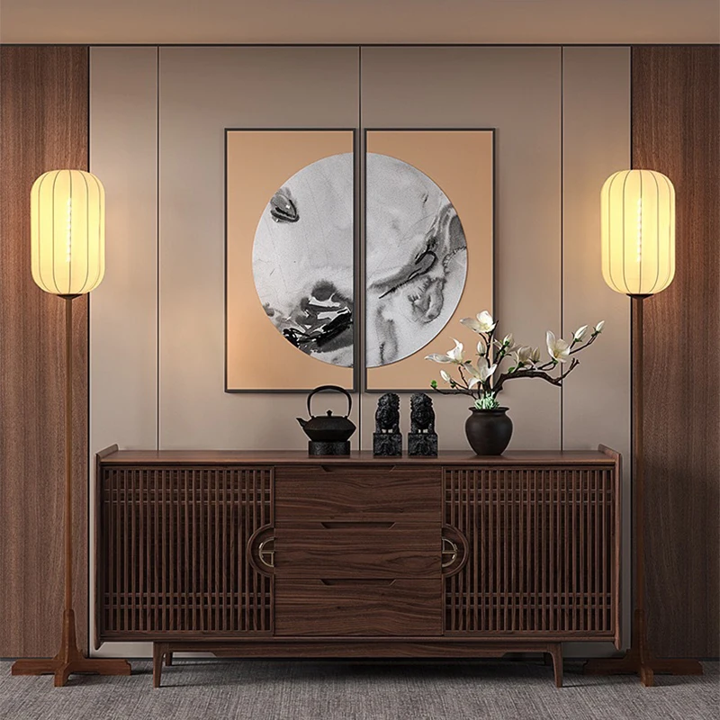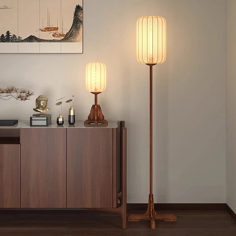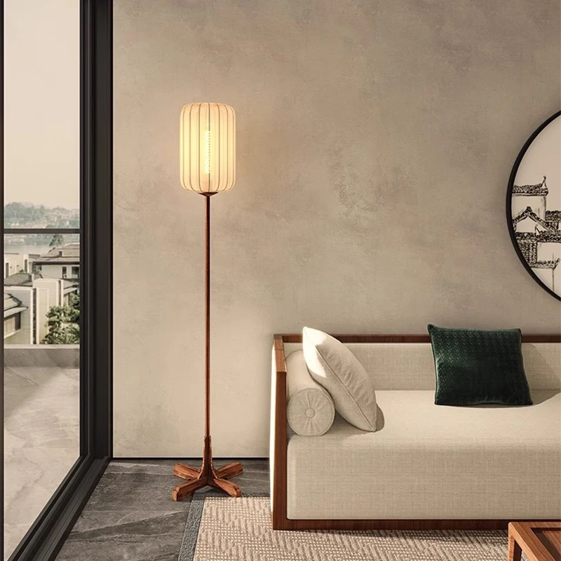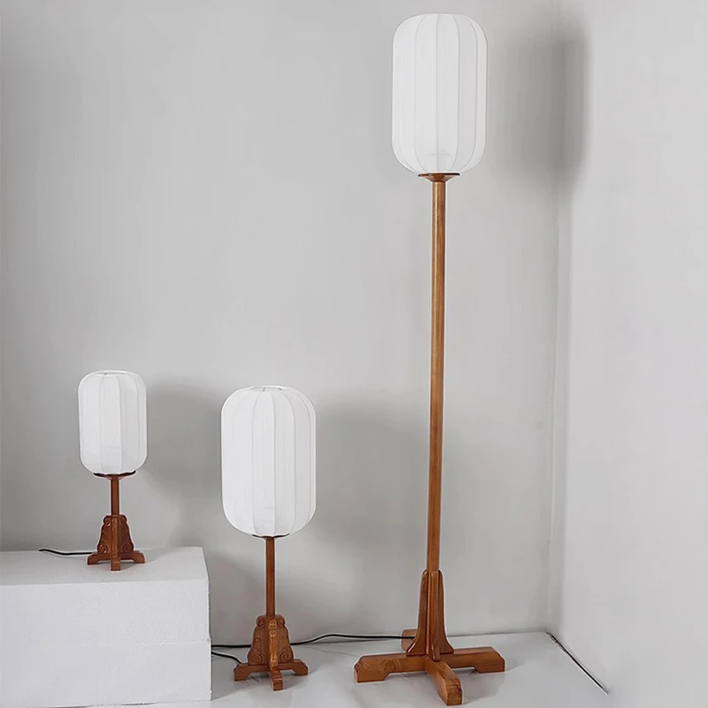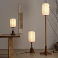 New Chinese Simple Style Floor Lamp Fabric Lampshade Wood Floor Lamp for Bedroom Living Room Decor